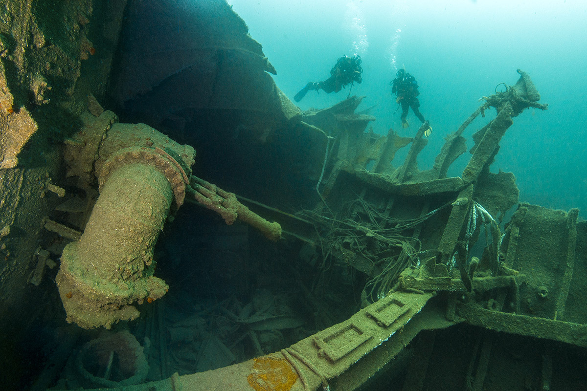The Aeolian Sky has been one of my favourite South Coast dives for many years and with good reason. First and foremost, she’s a big wreck. And when I say big, I mean over 10,000 plus tonnes of Greek freighter big. She may not have enjoyed an illustrious military career or played a significant role in our country's rich and varied maritime history but her sheer size, state and the variety of her cargo – much of which is still in place – makes her a dive worth adding to anyone’s log book. You might expect such a big wreck to be in deep water but the Sky is relatively shallow – at a depth of around 30m, she’s accessible to most divers.